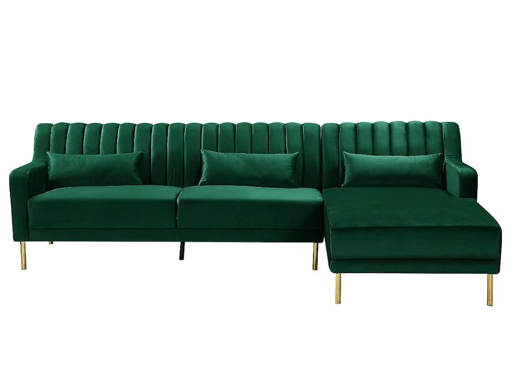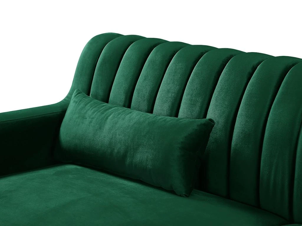 Avec ses pieds en métal doré, son revêtement en velours, son dossier strié et ses 3 coussins de déco offerts, le canapé MEYREUIL ne manque pas d’atouts pour vous séduire ! Telle une invitation à vous asseoir, il n’attend que vous !