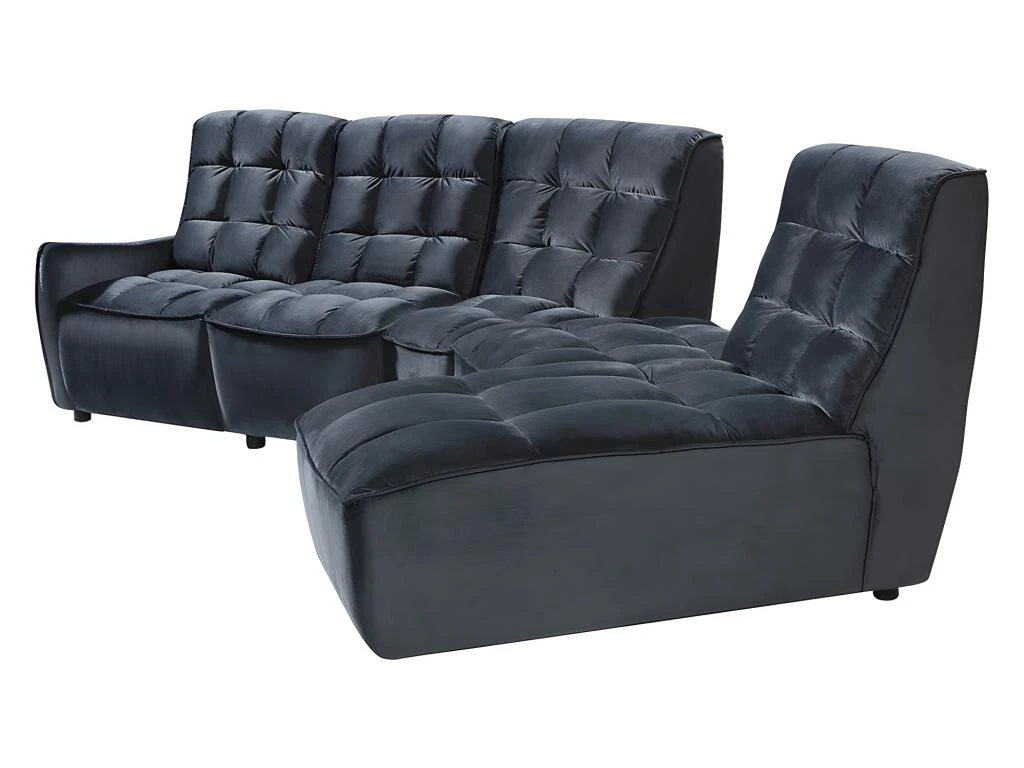 Le canapé d’angle modulable ALFORD saura vous plaire grâce à son style, sa praticité et son confort. Doté d’un revêtement en velours capitonné, ce canapé apportera une touche de charme à votre intérieur. Modulable, vous pouvez disposer ses 5 modules comme vous le souhaitez. Enfin, le canapé ALFORD possède une assise relax électrique, de quoi vous détendre à tout moment.
