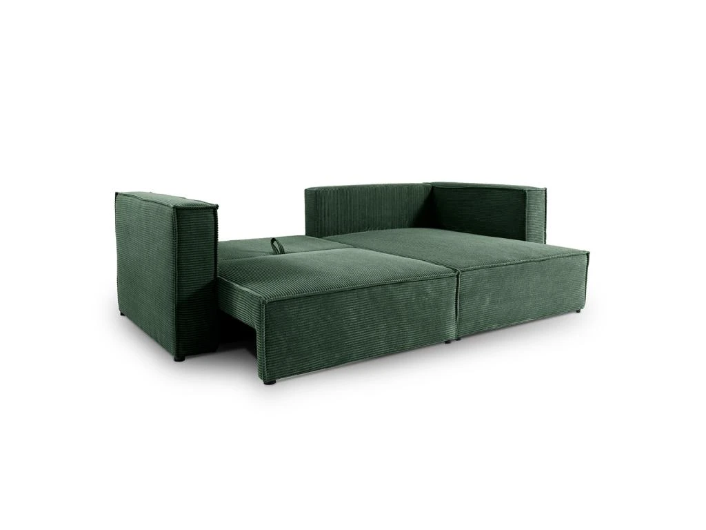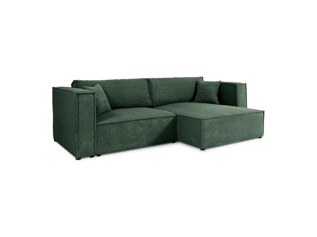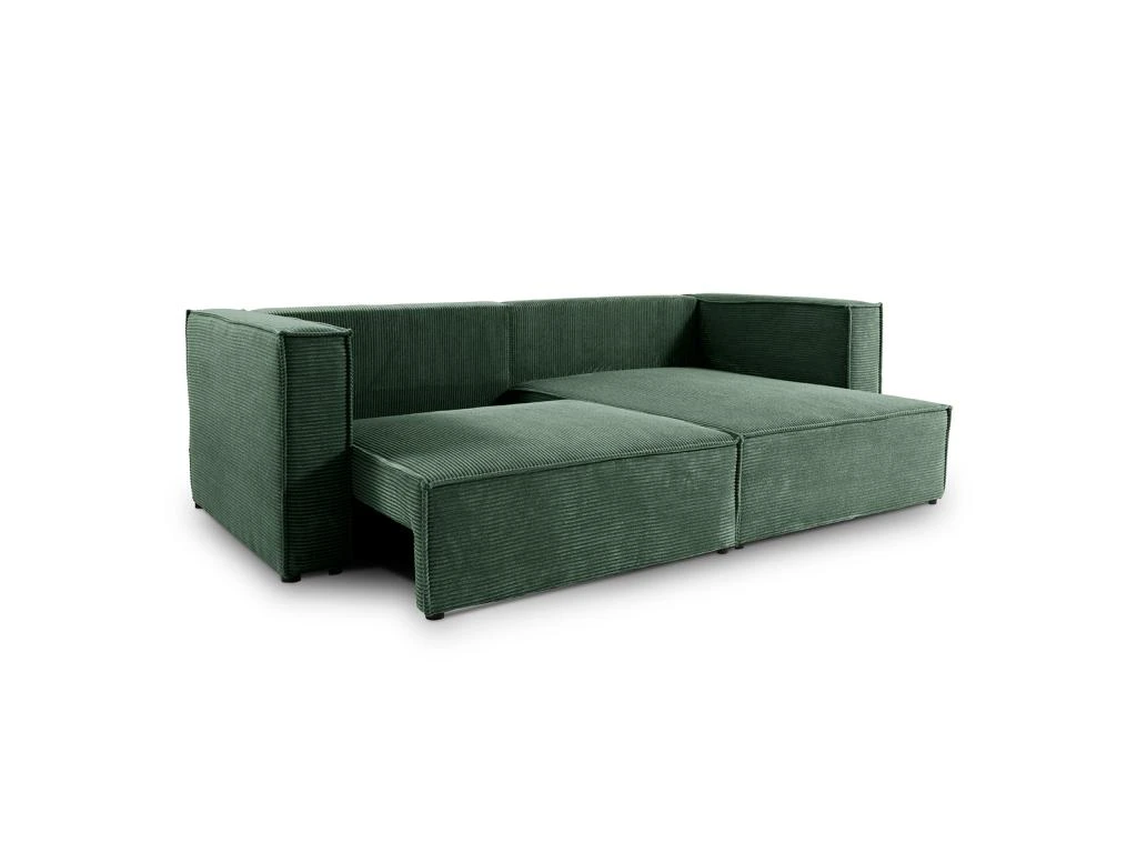 Matériaux : Tissu velours côtelé 100% Polyester – Rembourrage de l’assise : mousse de polyuréthane T28 épaisseur 11 cm et ressorts ondulés – Rembourrage du dossier : mousse T25 épaisseur 8 cm – Piétement ABS noir