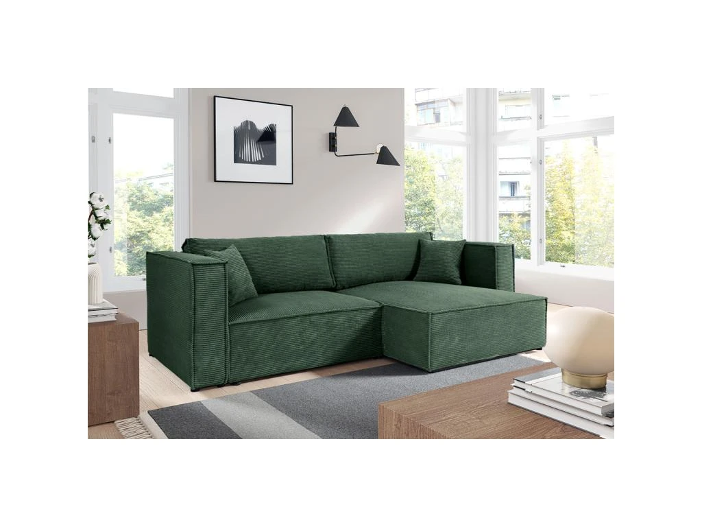 Caractéristiques : Canapé méridienne 3 places – Angle réversible : la méridienne peut être placée à droite ou à gauche lors du montage – Convertible en lit d’appoint – Ouverture facile : avance de l’assise soutenu par le système de dépliage automatique DL et bascule du dossier – Mécanisme avec ralentisseur – Coffre de rangement : poids maximum 8kg – 2 coussins de dossier – 2 Coussins décoratifs – Coussins dossier et décoratifs déhoussables – Existe en 9 coloris