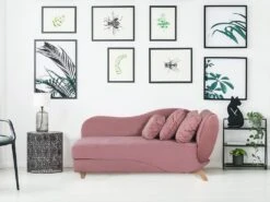 Chaise Longue Chesterfield En Tissu Beige à Motif Floral Côté Gauche NIMES