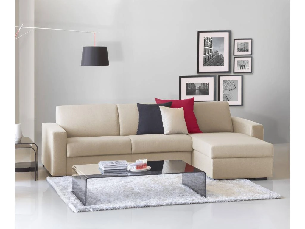 RÉSISTANCE ET CONFORT – La structure du produit en fer garantit durabilité, stabilité et résistance dans le temps – Ce canapé-lit comprend un sommier à lattes électrosoudé, un matelas indéformable en polyuréthane expansé et des accoudoirs rembourrés fins de 10 cm – Le rembourrage est en un tissu en polyester doux entièrement déhoussable et lavable en machine jusqu’à 30 degrés – Le compartiment contenant le coussin inséré dans le dossier vous permettra de ranger de manière pratique les coussins inutilisés – Le l’espace de rangement créé sous la péninsule est parfait pour placer coussins, draps et housses de manière discrète et ordonnée.