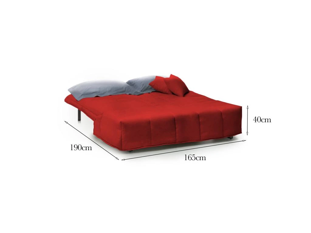 DIMENSIONS DU PRODUIT – Dimensions du canapé: Longueur 165 cm x Largeur 90 cm x Hauteur 85 cm – Dimensions du lit: Largeur 165 cm x Longueur 190 cm x Hauteur 40 cm environ – Charge maximale 400 kg