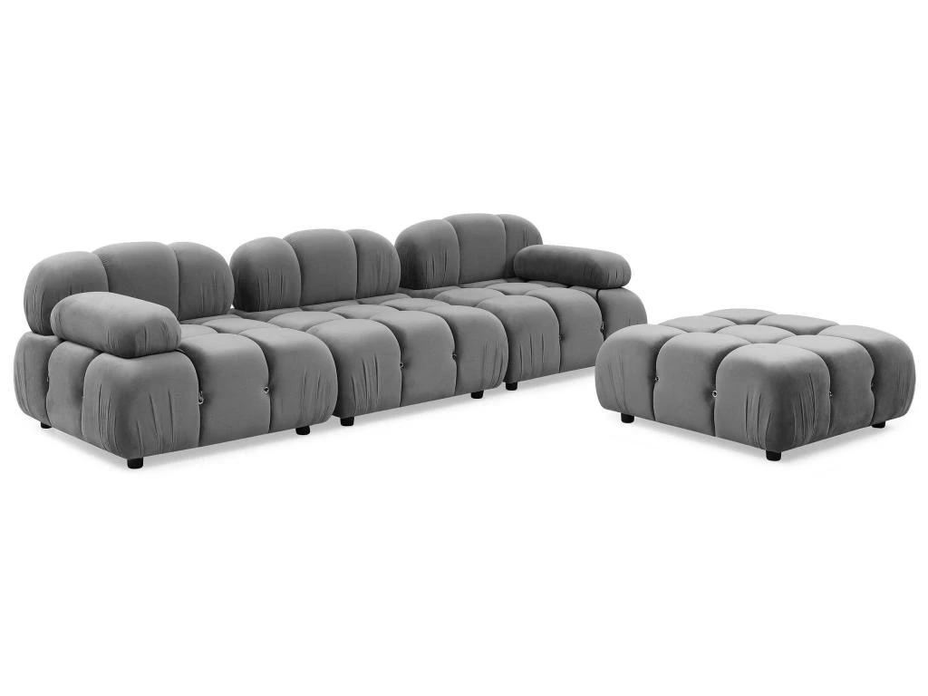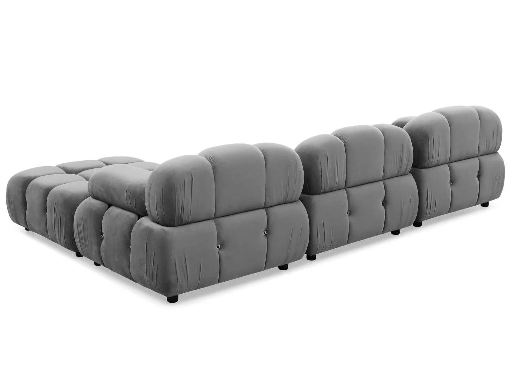 Le revêtement en velours ultra doux met en valeur le matelassage de l assise et du dossier de ce grand canapé modulable.