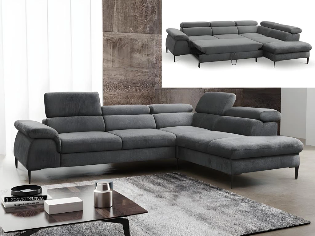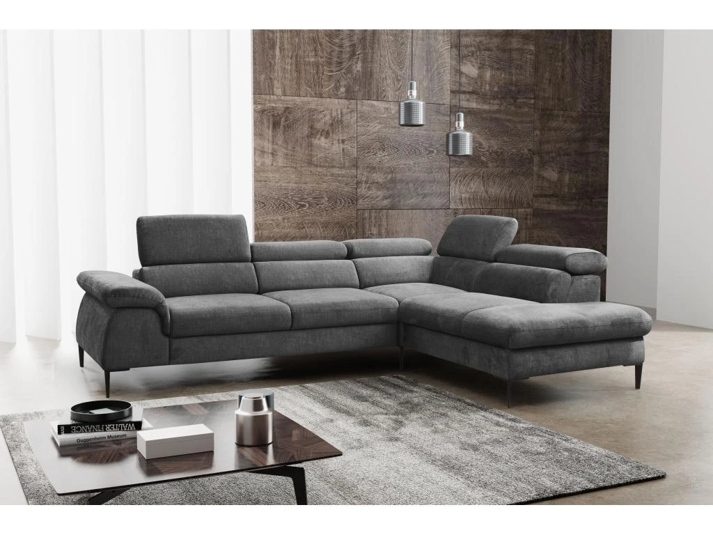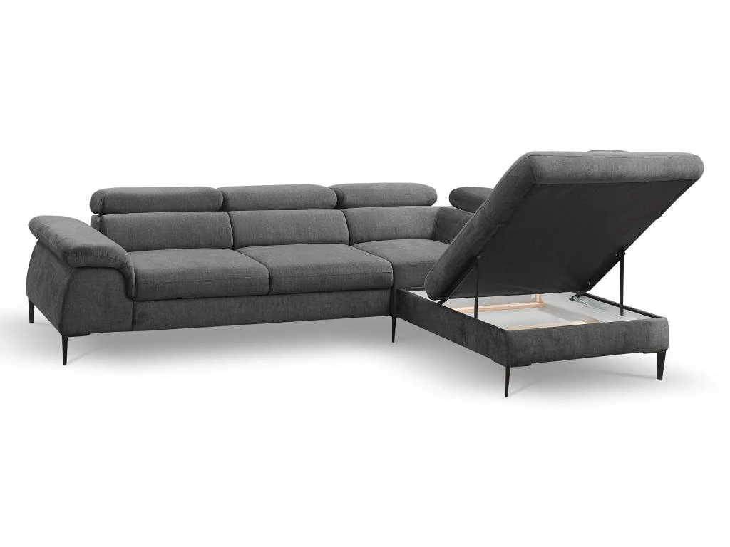 Le canapé d’angle SEPINA saura vous convaincre par son style contemporain, souligné par ses pieds en métal noir, son grand confort, mais aussi son aspect pratique. Convertible et disposant d’un coffre de rangement, ce modèle deviendra une pièce essentielle de votre intérieur. Il vous offre également trois têtières relax avec six inclinaisons différentes. Vous trouverez forcément celle qui vous plaira !