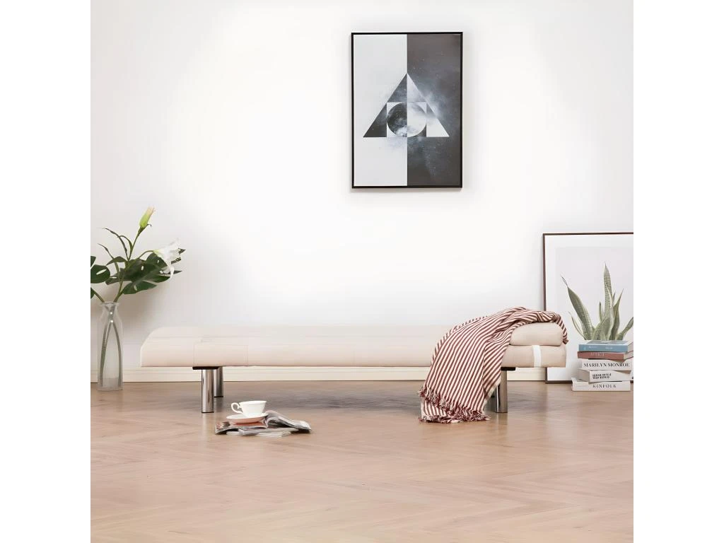 - Matériau : cadre en bois + revêtement en polyester + pieds chromés