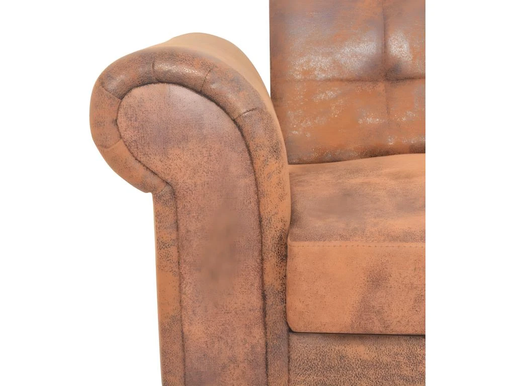 - Matériau : cadre en bois + revêtement en daim synthétique avec rembourrage