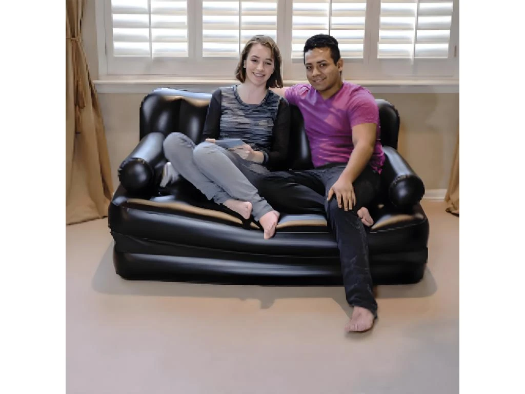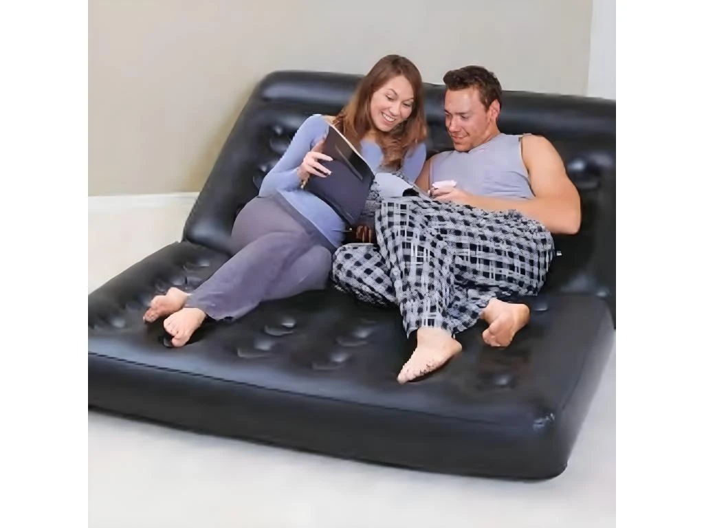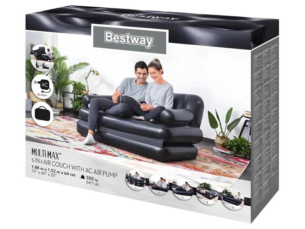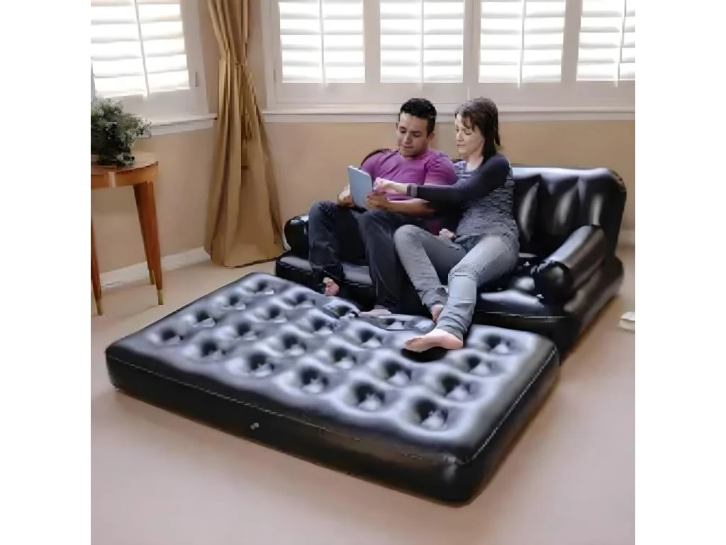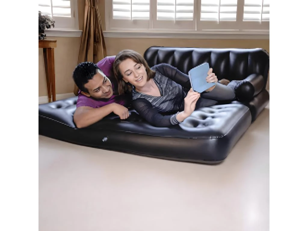 Ce canapé double 5 en 1 multifonctionnel de la marque Bestway est un ajout polyvalent à n’importe quelle pièce. Il se transforme facilement en un lit double, un lit à deux étages, un fauteuil inclinable, un salon ou un lit surélevé en quelques minutes à l’aide de la pompe à air AC incluse.