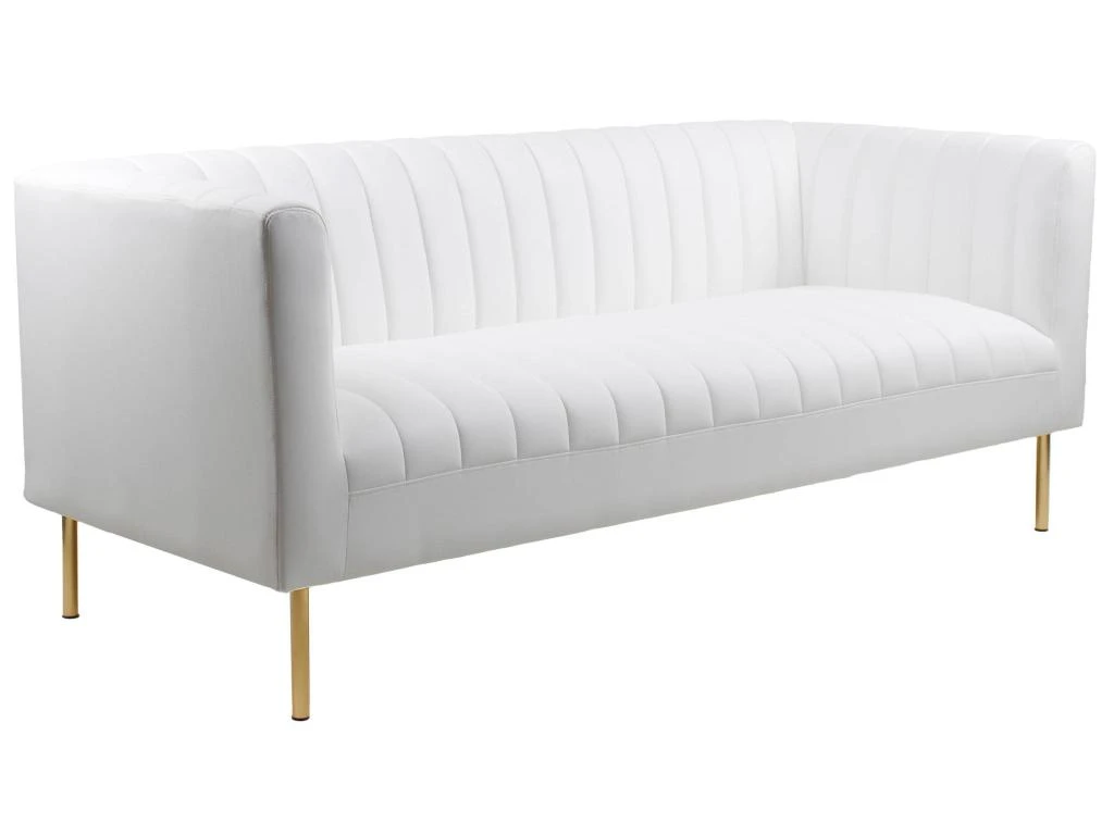 Avec ses pieds en métal doré et son revêtement résistant en simili, le canapé Sacramento apportera une touche de douceur et un esprit cosy dans votre pièce.