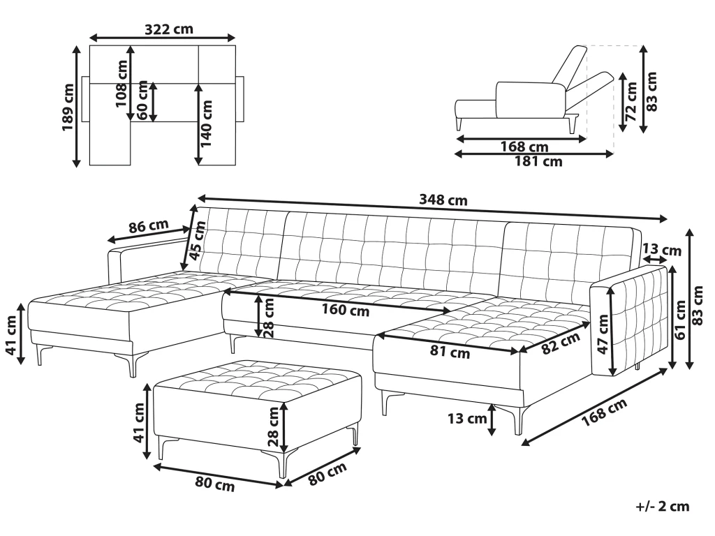 L`offre inclue: 1 x Canapé 3 places, 2 x Méridienne, 1 x Ottoman