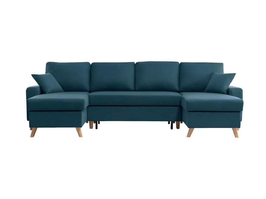 Optimisez l’espace de votre salon avec ce canapé panoramique scandinave convertible avec 2 coffres en tissu déperlant ! Très pratique, ce canapé pouvant également se convertir en couchage dispose aussi de deux coffres de rangement que ce soit pour y stocker des coussins et couettes ou encore tout autre objet à ranger.