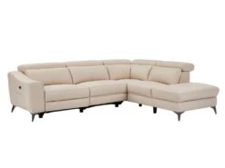 Canapé D’angle Droit Relax électrique En Cuir De Vachette Beige PUNO II