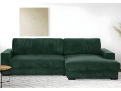 Canapé D’angle à Droite Convertible 3 Places Avec Coffre En Velours Côtelé Vert Foncé – Arty