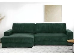 Canapé D’angle à Gauche Convertible 3 Places Avec Coffre En Velours Côtelé Vert Foncé – Arty