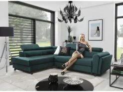 Canapé D’angle Convertible – ERWAN – En Tissu Luxe 5 Places, Vert, Angle Droit (vu De Face)