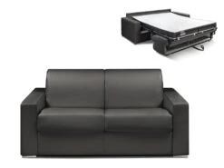 Canapé 2 Places Convertible Express En Simili EMIR – Noir – Couchage 120 Cm – Matelas 14 Cm