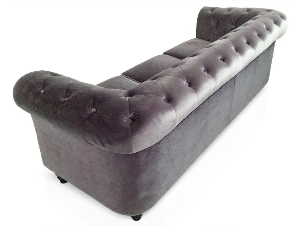 Envie d’un renouveau dans votre salle de séjour ? Optez pour ce canapé 3 places Chesterfield Velours. Le chic du style anglais mêlé à un design contemporain, font de ce modèle de canapé le plus agréable des canapés droits 3 places.Moelleux à souhait, l’assise de ce canapé Chesterfield garantit un confort optimal, grâce à la douceur inégalée du velours. Il est parfait pour recréer un environnement cosy et élégant à souhait dans votre intérieur. Ce large canapé d’une longueur de 210 cm pour 82,5 cm de profondeur et 66 cm de large convient parfaitement à tous ceux qui recherchent un canapé de première qualité et au design soigné. Il est parfait pour apporter une touche vintage à un intérieur contemporain. Si vous recherchez un canapé solide, ce modèle Chesterfield en velours répondra à vos attentes. Sa structure en bois lui procure une grande solidité à toute épreuve. Son revêtement en velours résiste fortement à l’usure et ne se déchire pas facilement.Ce canapé capitonné de style anglais est une valeur sûre. Intemporel et indémodable, il trouve naturellement sa place dans tous les intérieurs. Le velours choisi pour son revêtement lui procure ce chic et ce raffinement typiquement anglais tant apprécié chez les meubles britanniques.Ce canapé n’a rien à envier aux autres modèles disponibles sur le marché. Il est moderne et tendance à souhait. Vous l’aurez compris, si vous souhaitez apporter une note british à votre salle de séjour, tout en restant dans l’air du temps, ce modèle de canapé Chesterfield est fait pour vous ! Catégories Associées :Canapé gris, Canapés velours