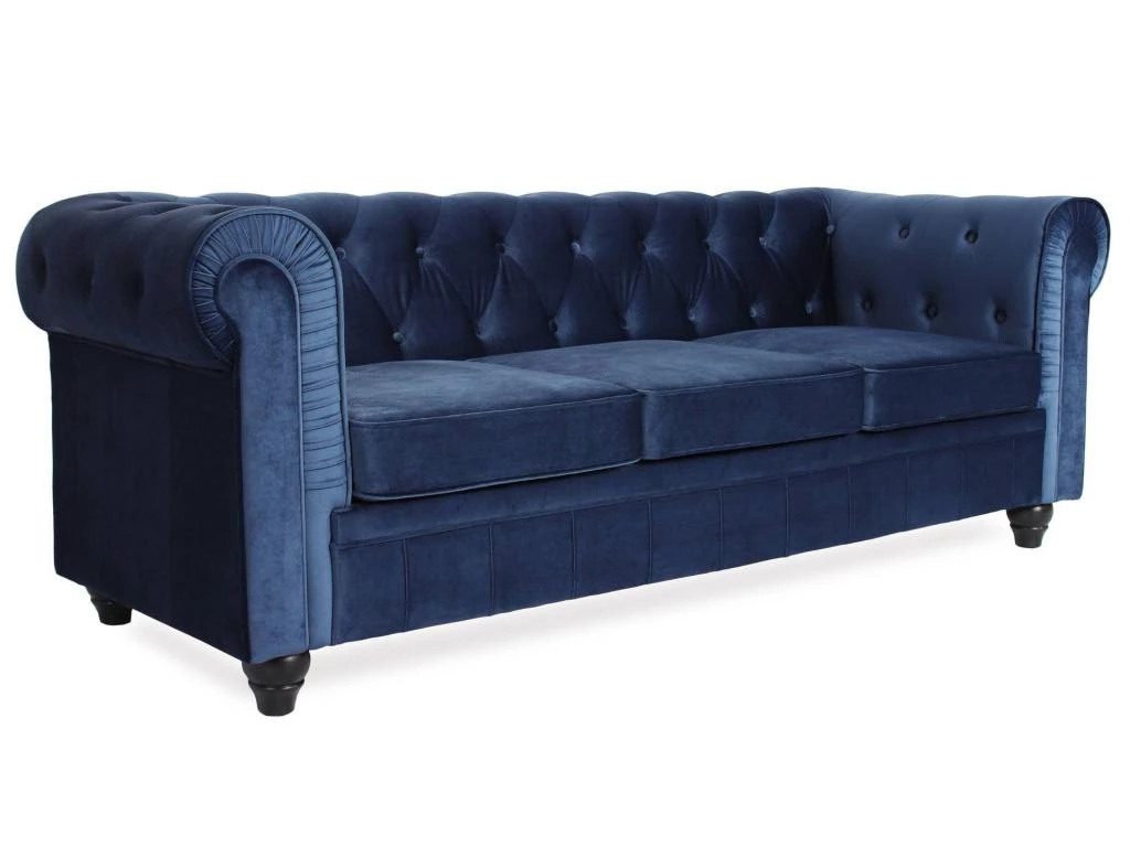 Le Chesterfield 3 places est un type de canapé réputé pour son allure cosy et élégante. Le canapé capitonné Chesterfield est d’origine anglaise, au style indémodable et intemporel. Ce modèle présente un éventail de plis au niveau de ses larges accoudoirs et un capitonnage confortable. Revêtement velours résistant et doux au toucher.