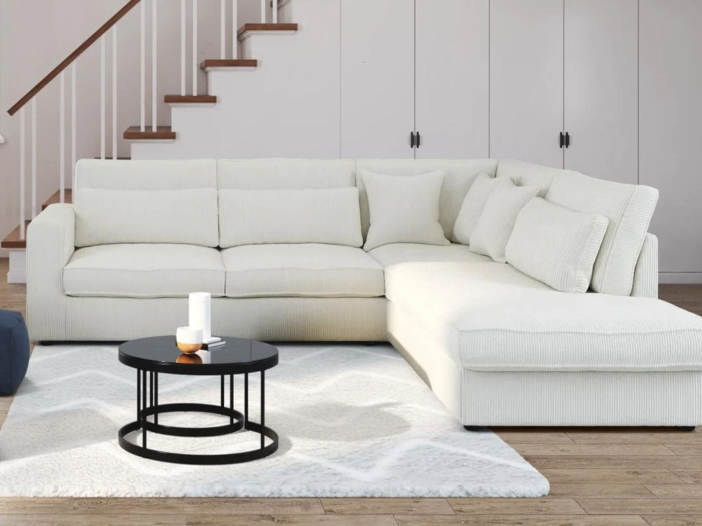 Le grand canapé d’angle MONDOVI saura vous séduire grâce à son velours côtelé très tendance qui vous apportera douceur et confort au quotidien. Ses nombreux coussins en velours offrent également un accueil moelleux et délicat. Avec son format XXL, profitez de moments conviviaux entre amis ou en famille !