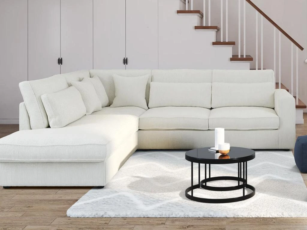 Le grand canapé d’angle MONDOVI saura vous séduire grâce à son velours côtelé très tendance qui vous apportera douceur et confort au quotidien. Ses nombreux coussins en velours offrent également un accueil moelleux et délicat. Avec son format XXL, profitez de moments conviviaux entre amis ou en famille !