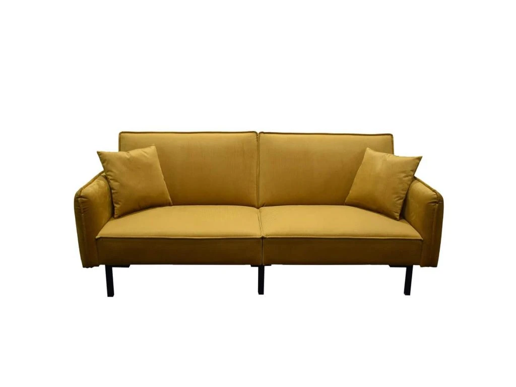 Canapé Convertible Bois d’Eucalyptus Velours Ocre de la gamme Konae.