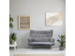 HELICIA – Canapé Fixe 2 Places Tissu Gris