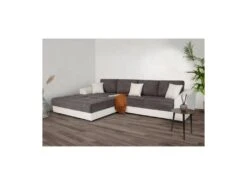 Canapé D’angle Convertible Gauche 4 Places Avec Coffre Joakim Noir Et Blanc