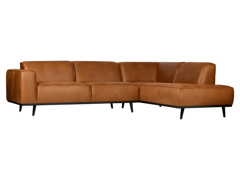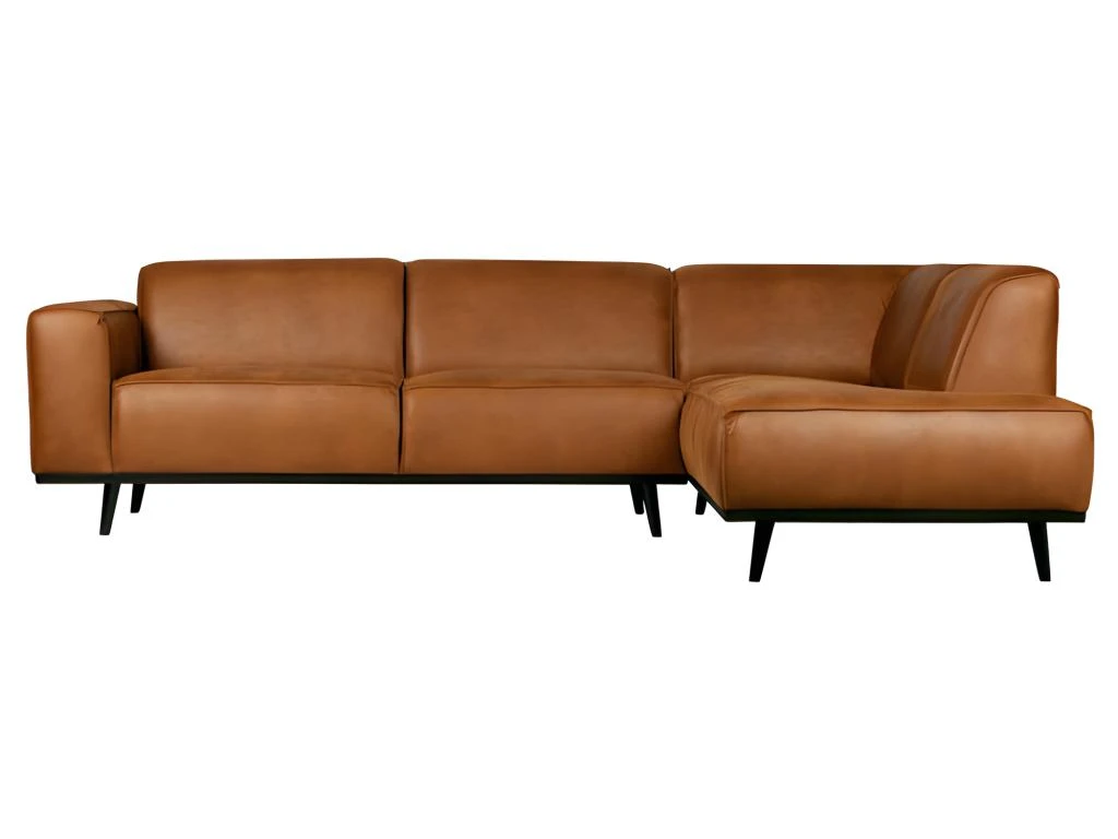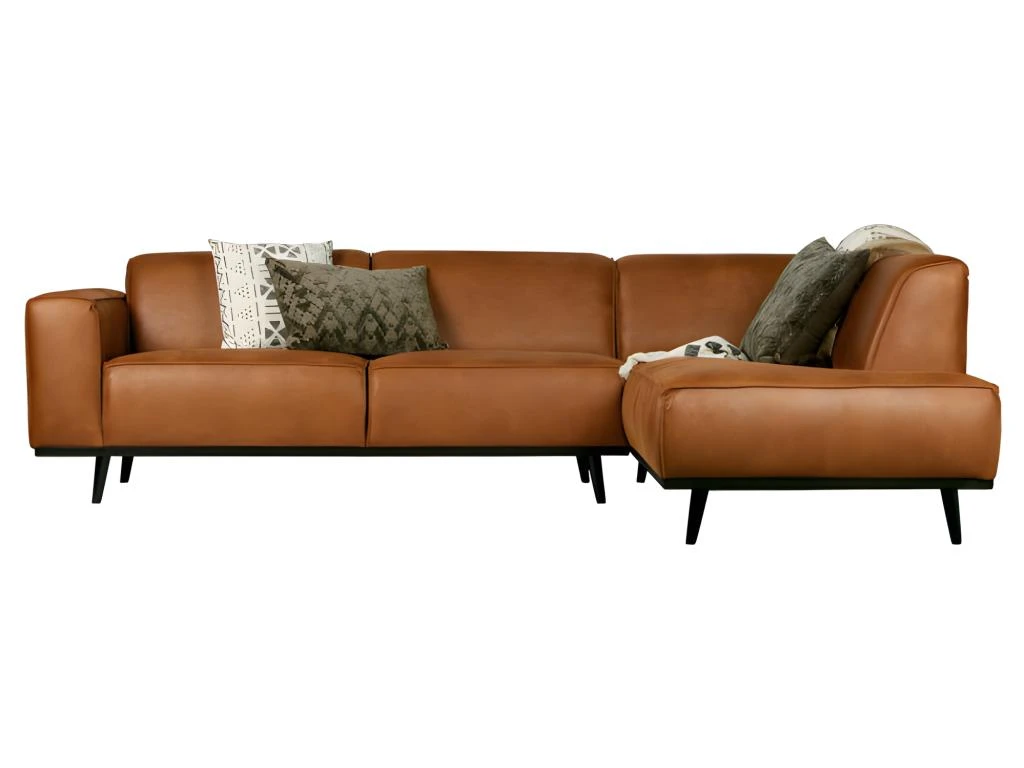 Ce canapé d’angle spacieux et confortable offre beaucoup de place pour toute la famille. Il est robuste et se décline en plusieurs variantes, tissus et couleurs. Cette version est en cuir recyclé couleur marron cognac.