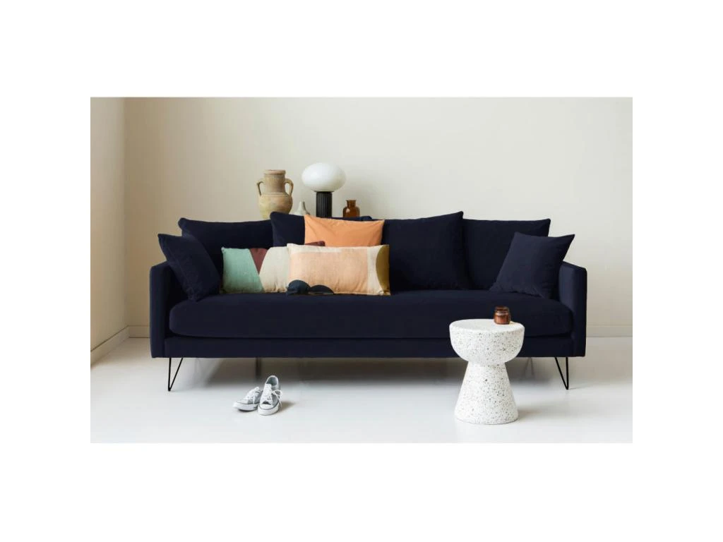Il est revêtu d’un velours 100% polyester tout doux (450g/m2) et joue la carte de l’élégance en se déclinant en plusieurs coloris. En effet, ce canapé Villabon est disponible en rouille, vert eucalyptus et bleu marine. Autant de possibilités qui rendront votre choix encore plus compliqué.